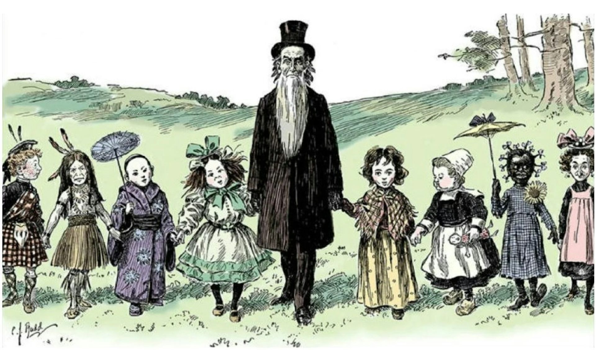 1904 Time cartoon by C.J. Rudd, captioned: ‘Mormon Elder Berry – out with his six year olds, who take after their mothers.’