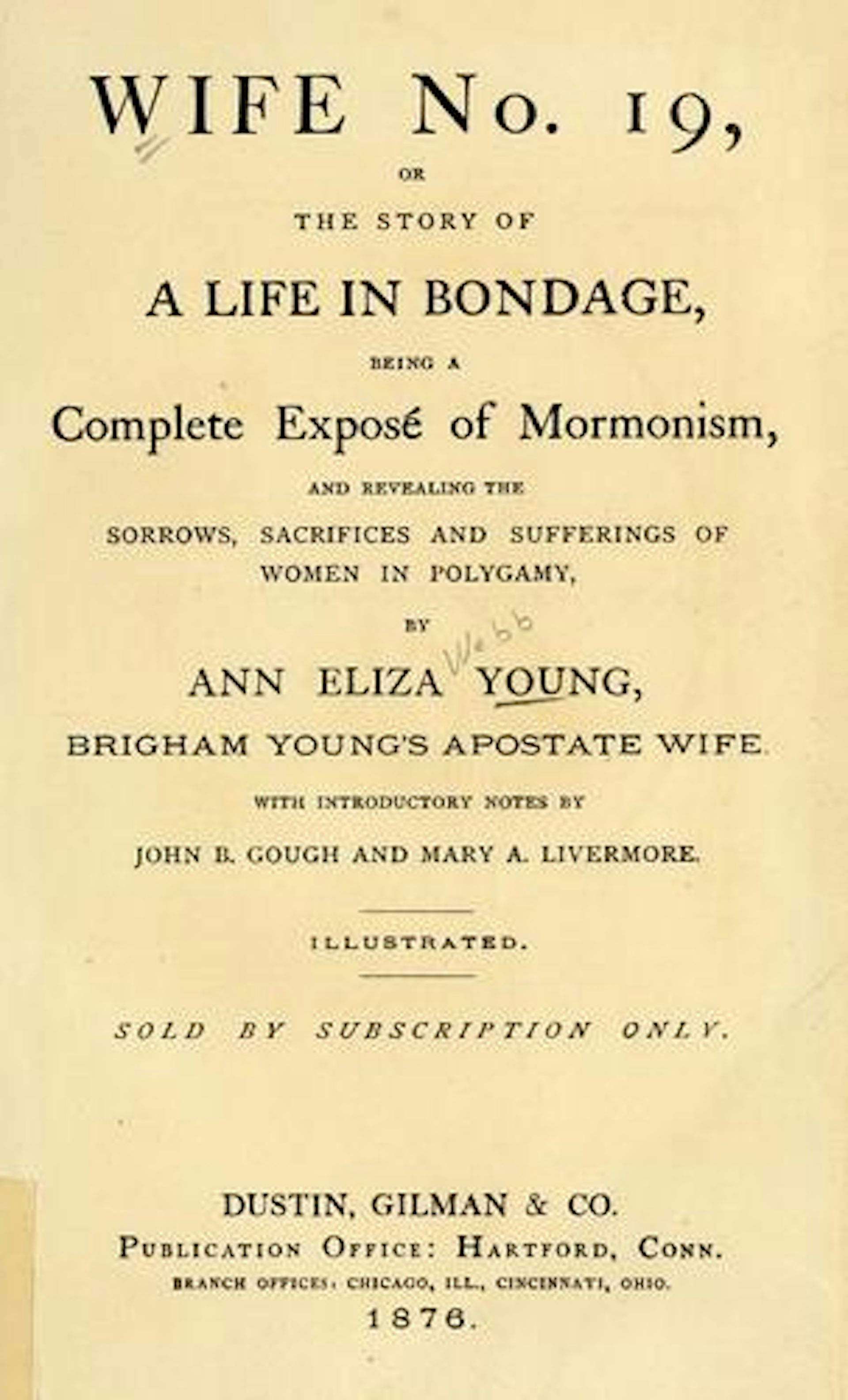 Ann Eliza Webb Young, ex-wife of Mormon prophet Brigham Young, wrote the exposé ‘Wife No. 19, Or The Story of Life in Bondage’.